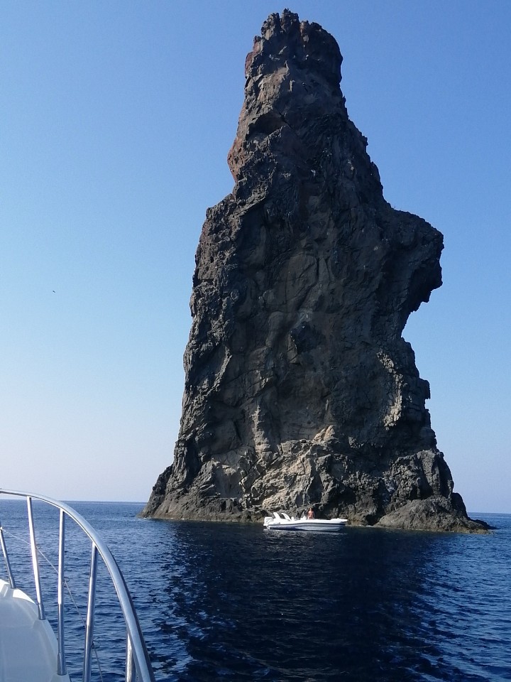 A nord si innalza lo Strombolicchio, solitario scoglio che emerge ripido dal Tirreno come un antico guardiano. Sul versante occidentale, la Sciara del Fuoco scende vertiginosa fino al mare, accogliendo di notte il materiale incandescente in uno spettacolo unico, visibile solo dal mare.